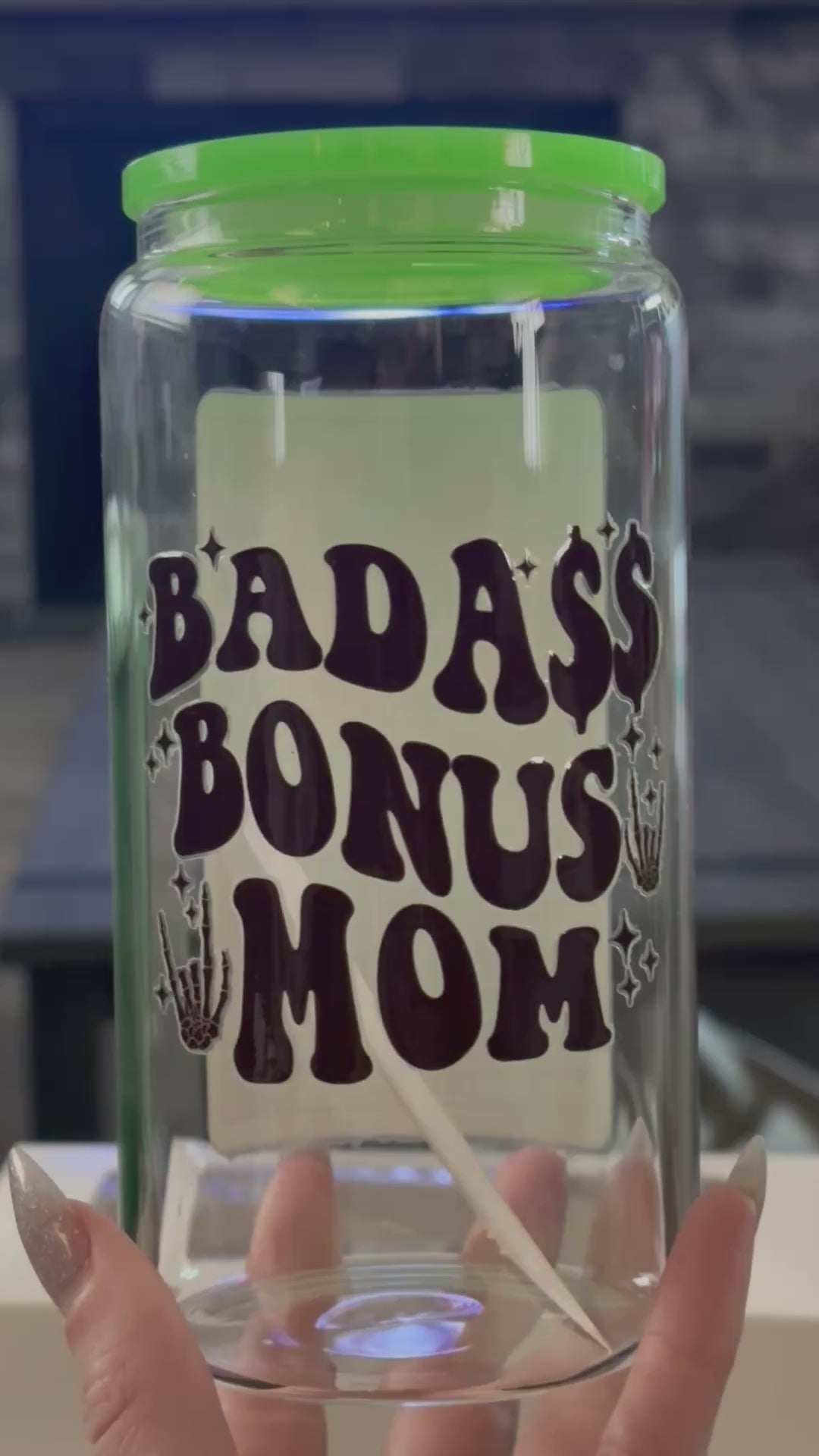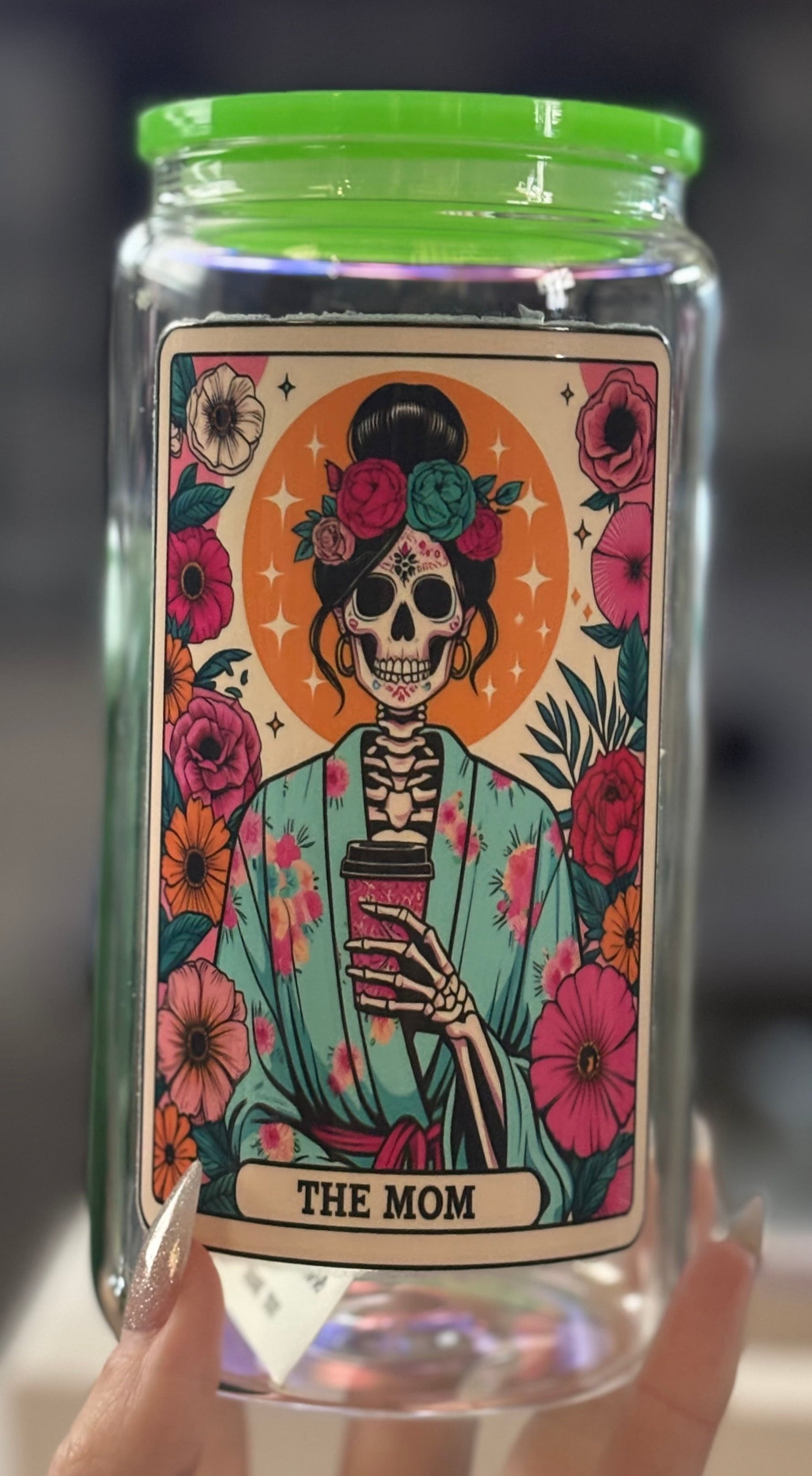 • “Badass Bonus Mom”; The Mom Tarot Card - Green Acrylic Lid