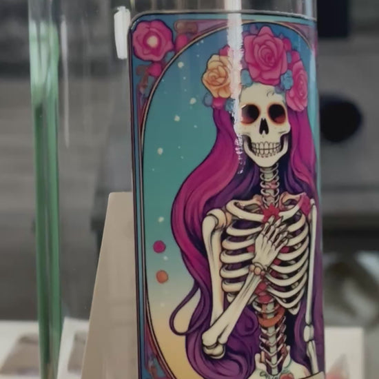 This 16 Oz glass cup measures 5.9 inches, perfect for any beverage hot or cold. It comes with a bamboo or acrylic lid and a 7.6-inch glass straw.