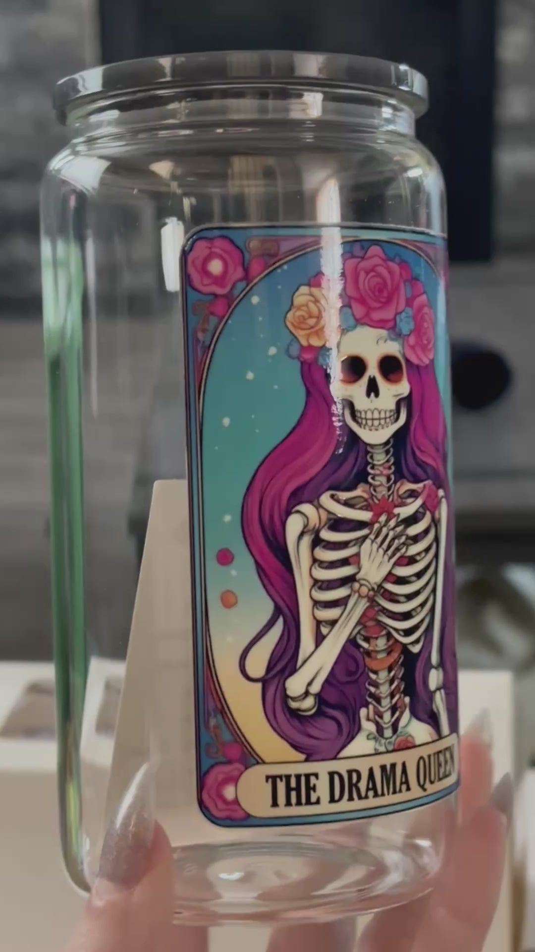 • The Drama Queen (Pink Hair) - Gray Acrylic Lid