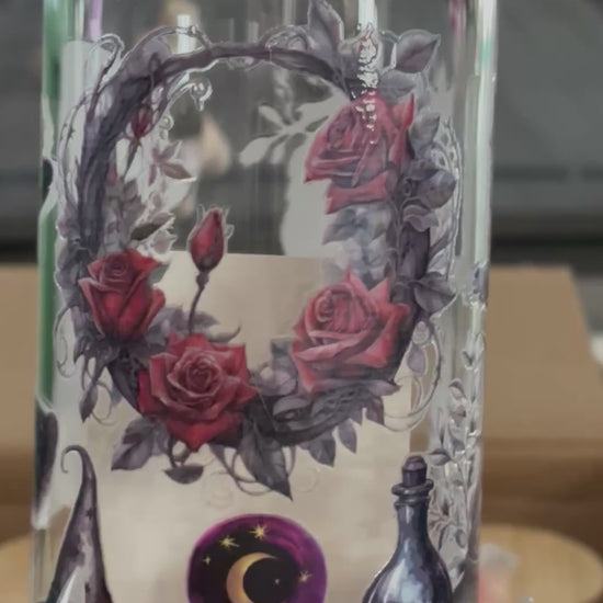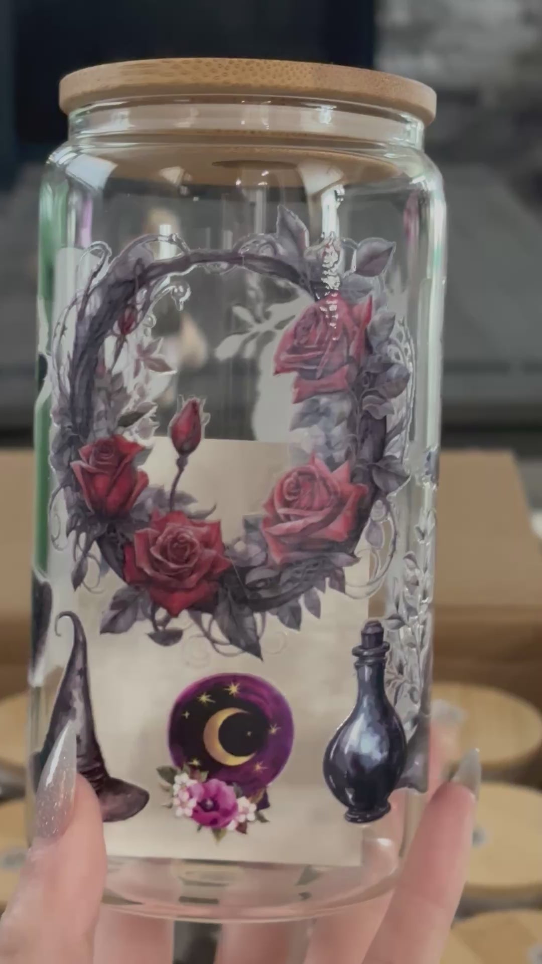 This 16 Oz glass cup measures 5.9 inches, perfect for any beverage hot or cold. It comes with a bamboo lid and a 7.6-inch glass straw.